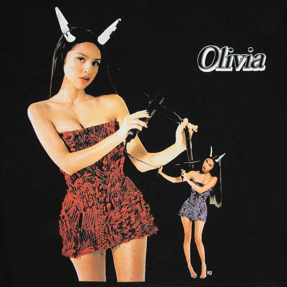 black cropped crewneck olivia rodrigo x rolling stone t-shirt featuring screen-printed graphics